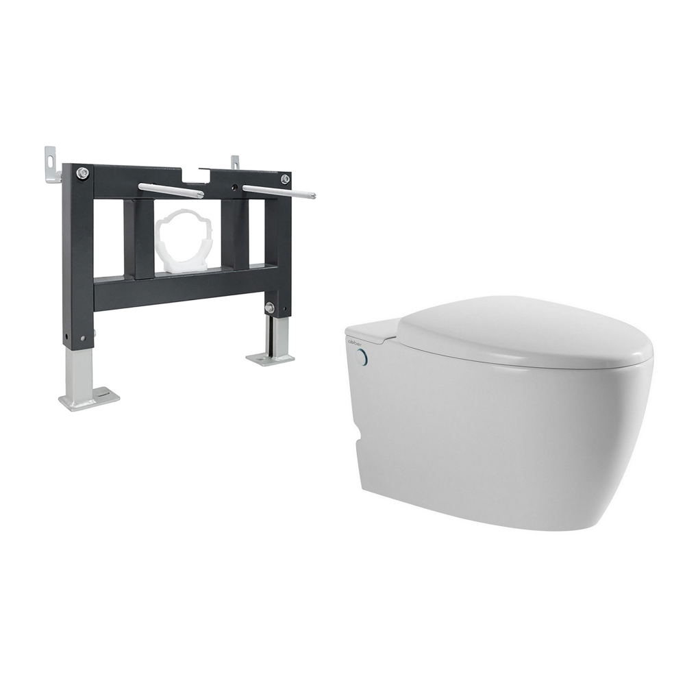 Инсталляция с подвесным унитазом комплект: Abber AC0101P с подвесным импульсным унитазом Bequem AC1107P с крышкой микролифт, цвет белый.