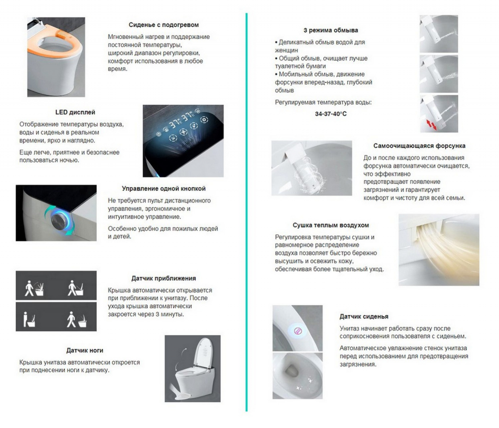 Функции электронного унитаза: