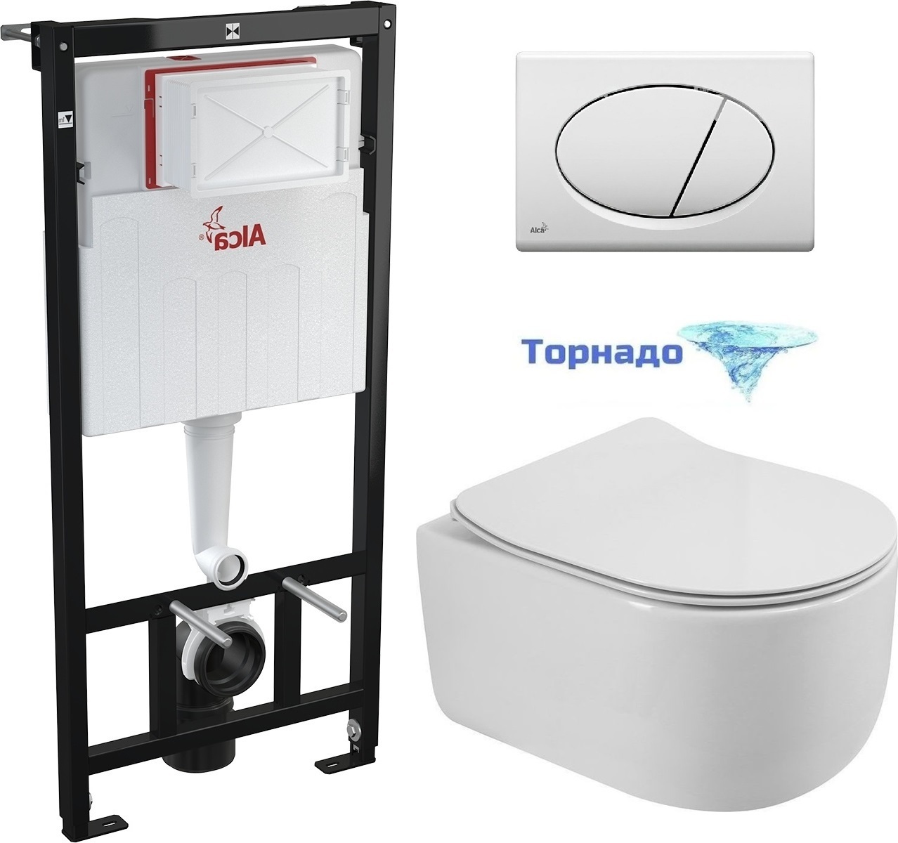 Инсталляция с подвесным унитазом комплект: Alcaplast AM101/1120-3:1 RU M70-0001 с подвесным безободковым унитазом BelBagno Soft-Tor BB084CH-TOR/SC сиденье микролифт, крепление, кнопка смыва белый.