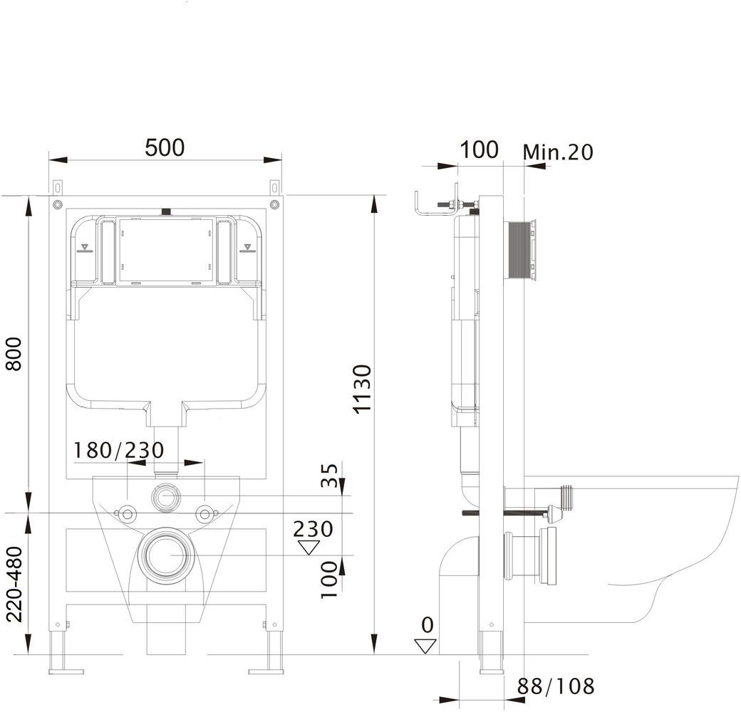 - Инсталляция совместима со смывными клавишами Geberit серии Sigma для механической системы смыва