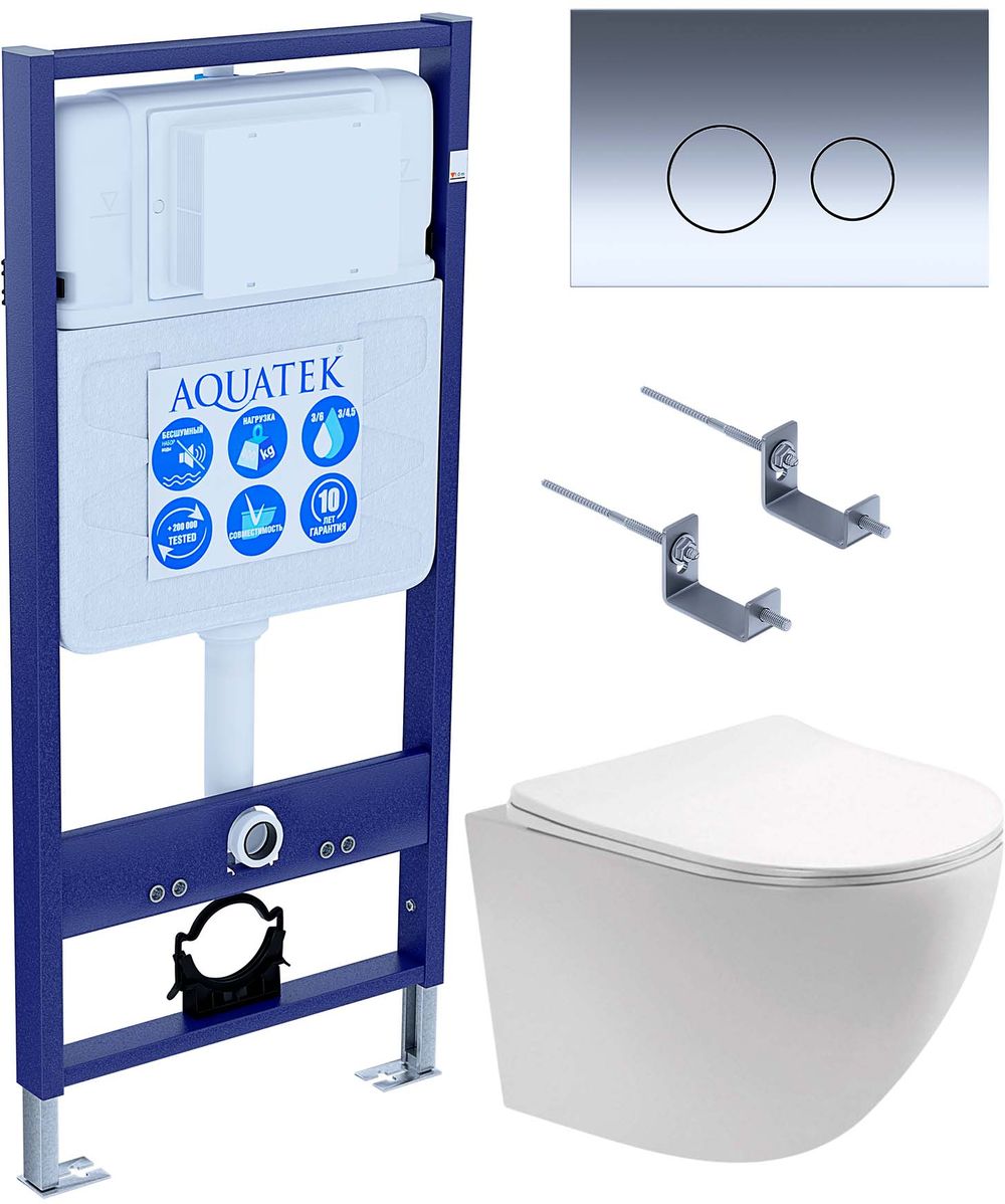 Инсталляция с подвесным унитазом комплект: Aquatek Set INS-0000012 с подвесным безободковым унитазом Европа AQ1901-00 сиденье микролифт, крепление, кнопка смыва хром глянцевый.