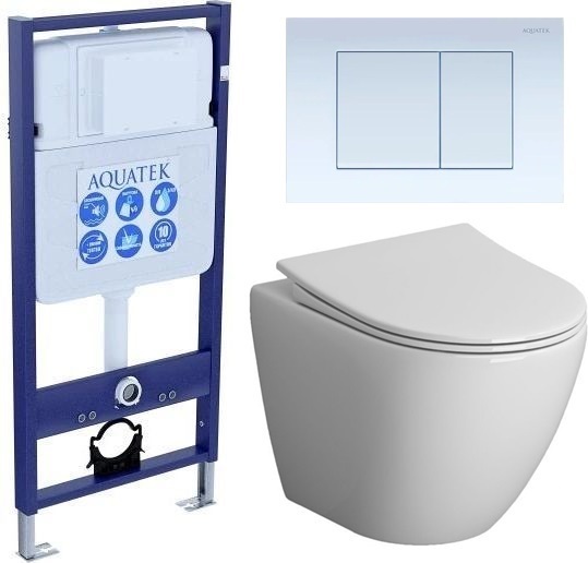 Инсталляция с подвесным унитазом комплект: Aquatek Standart 50 INS-0000012 с подвесным безободковым унитазом Niagara Vista NG-9301 сиденье микролифт, кнопка смыва белый