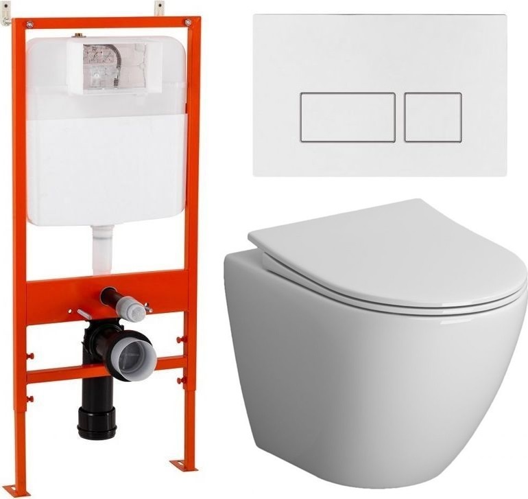 Инсталляция с подвесным унитазом комплект: BelBagno BB026/BB042BL с подвесным безободковым унитазом Niagara Vista NG-9301 сиденье микролифт, крепление, кнопка смыва белый глянцевый.