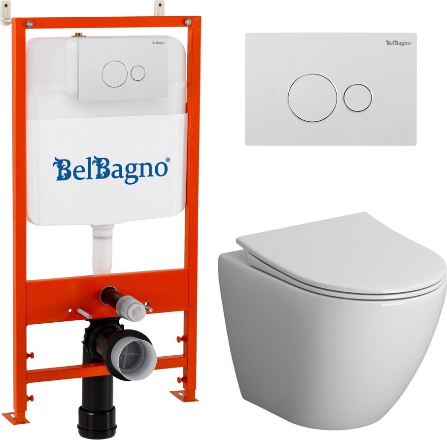 Инсталляция с подвесным унитазом комплект: BelBagno BB026/BB082BL с подвесным безободковым унитазом Niagara Vista NG-9301 сиденье микролифт, крепление, кнопка смыва белый глянцевый