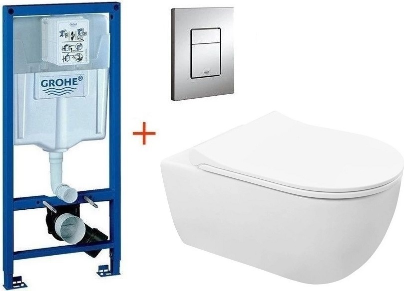 Инсталляция с подвесным унитазом комплект: Grohe Rapid SL 38772001 с подвесным безободковым унитазом Azario Ferio 87565 сиденье микролифт, крепление, кнопка смыва хром