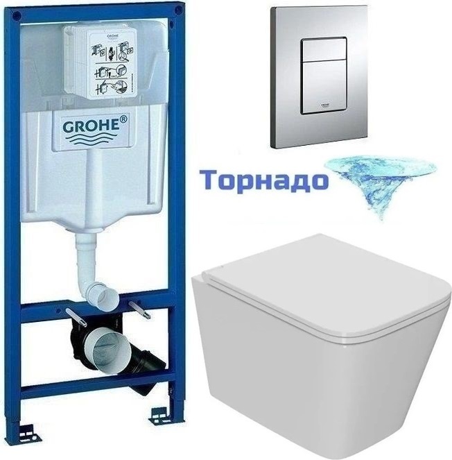 Инсталляция с подвесным унитазом комплект: Grohe Rapid SL 38772001 с подвесным безободковым унитазом Sintesi Balti SIN-TS-BLT-172 сиденье микролифт, крепление, кнопка смыва хром (система смыва Торнадо)