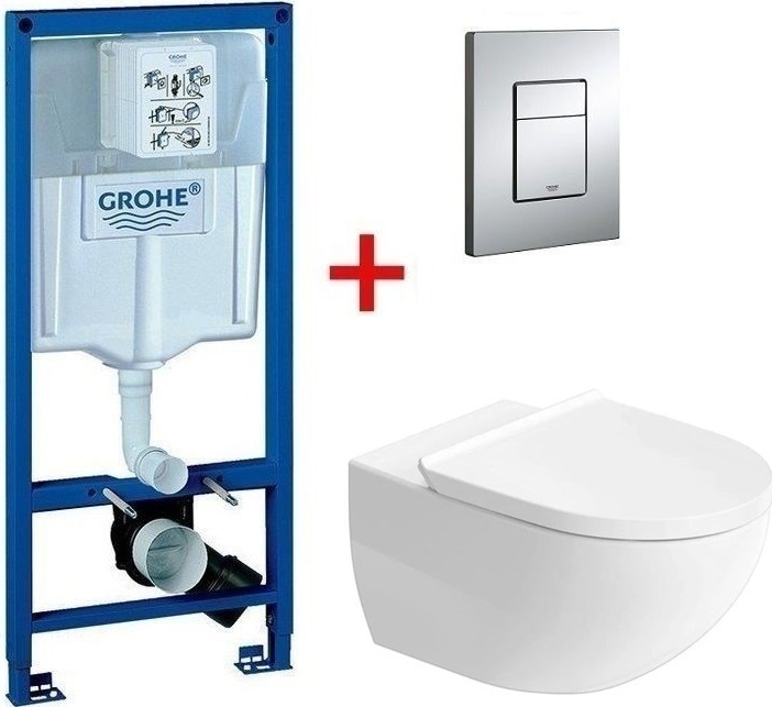 Инсталляция с подвесным унитазом комплект: Grohe Rapid SL 38772001 с подвесным унитазом Duravit Architec Rimless 45726900A1 сиденье микролифт, крепление, кнопка смыва хром.