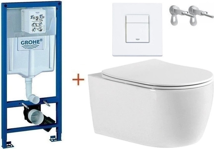 Инсталляция с подвесным унитазом комплект: Grohe Rapid SL 38772001+38732WM0 с подвесным безободковым унитазом Aquatek Европа AQ1106-00 сиденье микролифт, крепление, кнопка смыва белый матовый