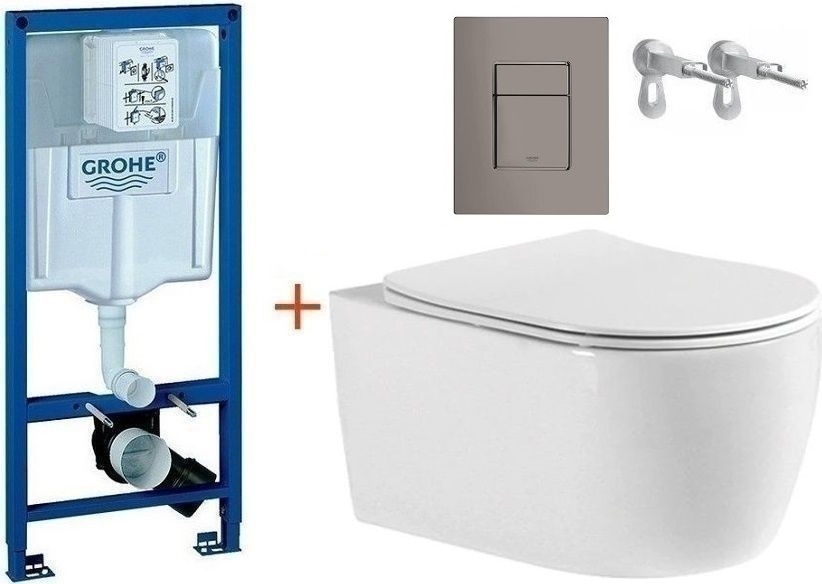 Инсталляция с подвесным унитазом комплект: Grohe Rapid SL 38772001+38732A00 с подвесным безободковым унитазом Aquatek Европа AQ1106-00 сиденье микролифт, крепление, кнопка смыва графит глянцевый