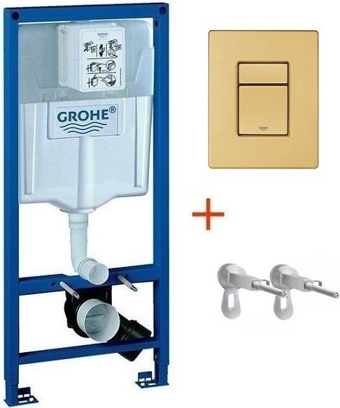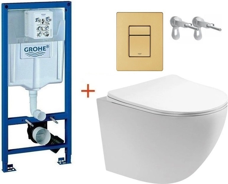 Инсталляция с подвесным унитазом комплект: Grohe Rapid SL 38772001+38732GN0 с подвесным безободковым унитазом Aquatek Европа AQ1900-00 сиденье микролифт, крепление, кнопка смыва золото матовое