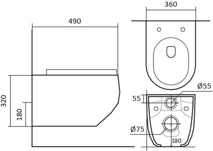 - Чаша унитаза безободковая 490*360*320 мм