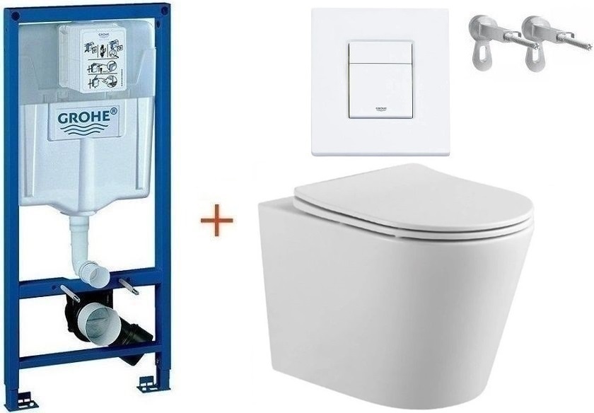 Инсталляция с подвесным унитазом комплект: Grohe Rapid SL 38772001+38732WM0 с подвесным безободковым унитазом Aquatek Вега AQ1904-00 сиденье микролифт, крепление, кнопка смыва белый матовый