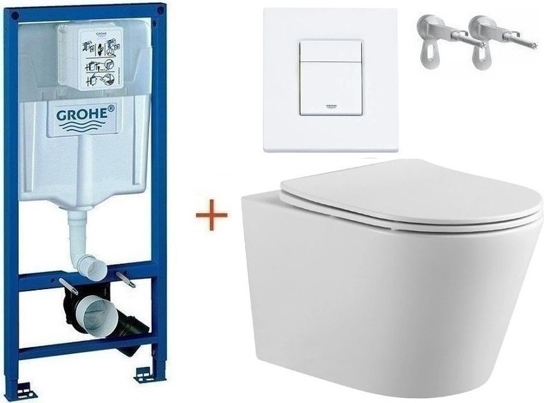 Инсталляция с подвесным унитазом комплект: Grohe Rapid SL 38772001+38732WM0 с подвесным безободковым унитазом Aquatek Вега AQ1905-00 сиденье микролифт, крепление, кнопка смыва белый матовый