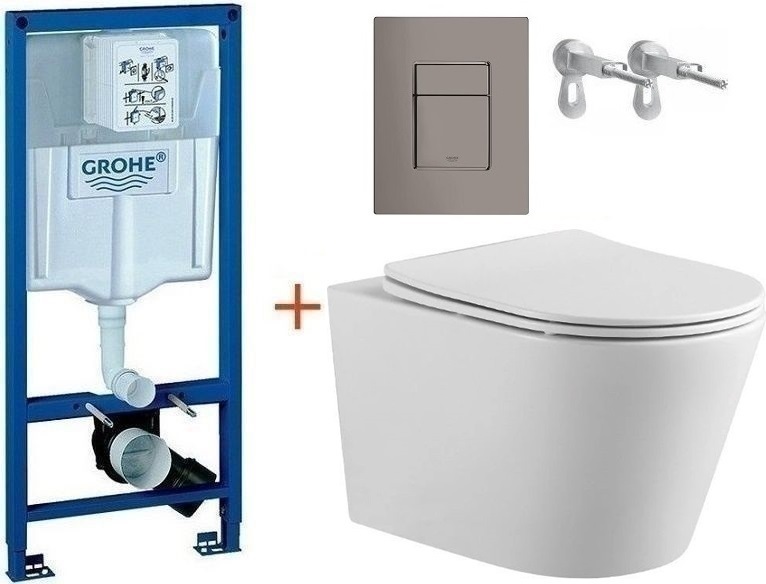 Инсталляция с подвесным унитазом комплект: Grohe Rapid SL 38772001+38732A00 с подвесным безободковым унитазом Aquatek Вега AQ1905-00 сиденье микролифт, крепление, кнопка смыва графит глянцевый
