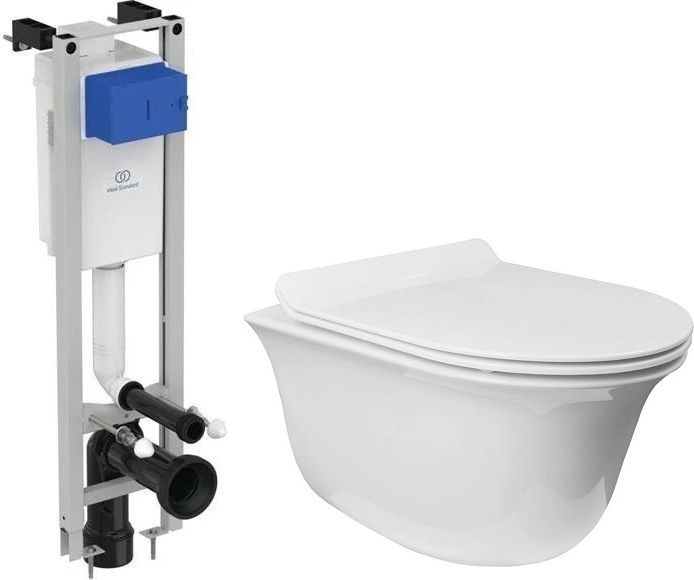 Инсталляция с подвесным унитазом комплект: Ideal Standard Prosys Eco Frame M E233267 с подвесным безободковым унитазом Azario Felice AZ-0051, сиденье с крышкой микролифт.