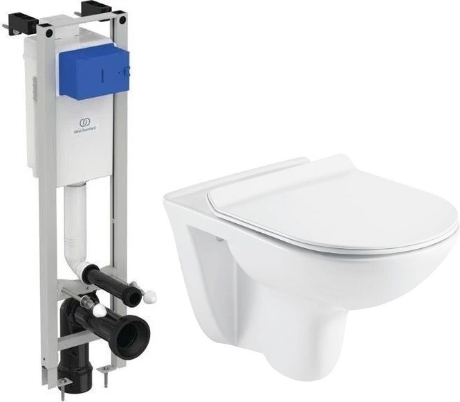 Инсталляция с подвесным унитазом комплект: Ideal Standard Prosys Eco Frame M E233267 с подвесным безободковым унитазом Azario Pavia AZ-2142, сиденье с крышкой микролифт.