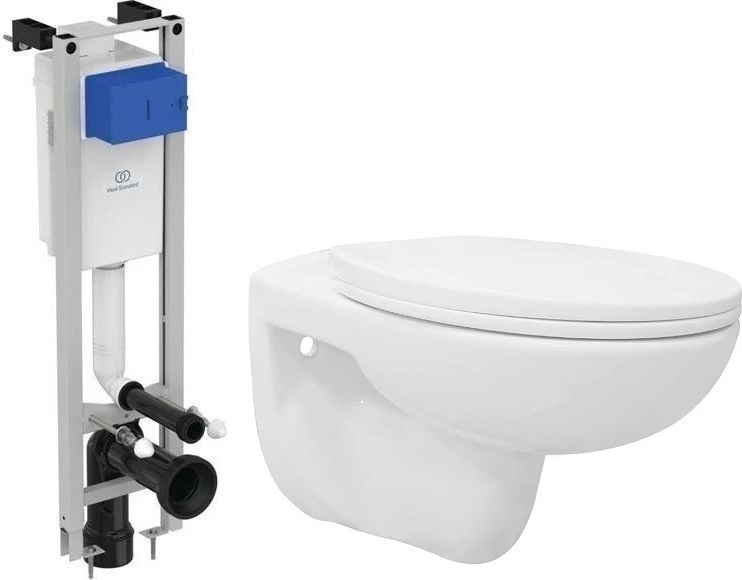 Инсталляция с подвесным унитазом комплект: Ideal Standard Prosys Eco Frame M E233267 с подвесным безободковым унитазом Loranto Fredo CS-WH8005, сиденье с крышкой микролифт.