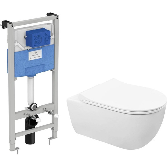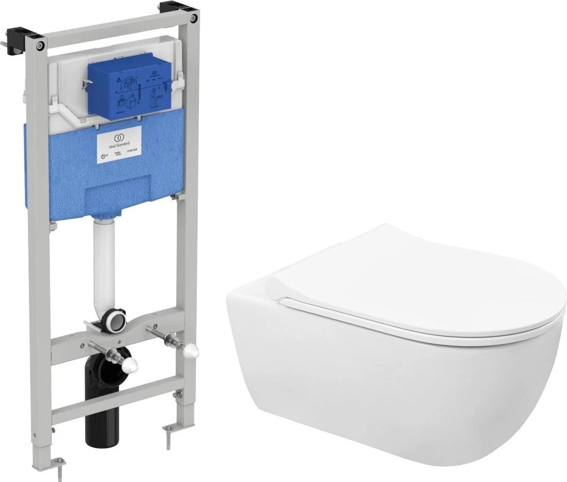 Инсталляция с подвесным унитазом комплект: Ideal Standard Prosys Frame 120 M R020467 с подвесным безободковым унитазом Azario Ferio 87565, сиденье с крышкой микролифт.