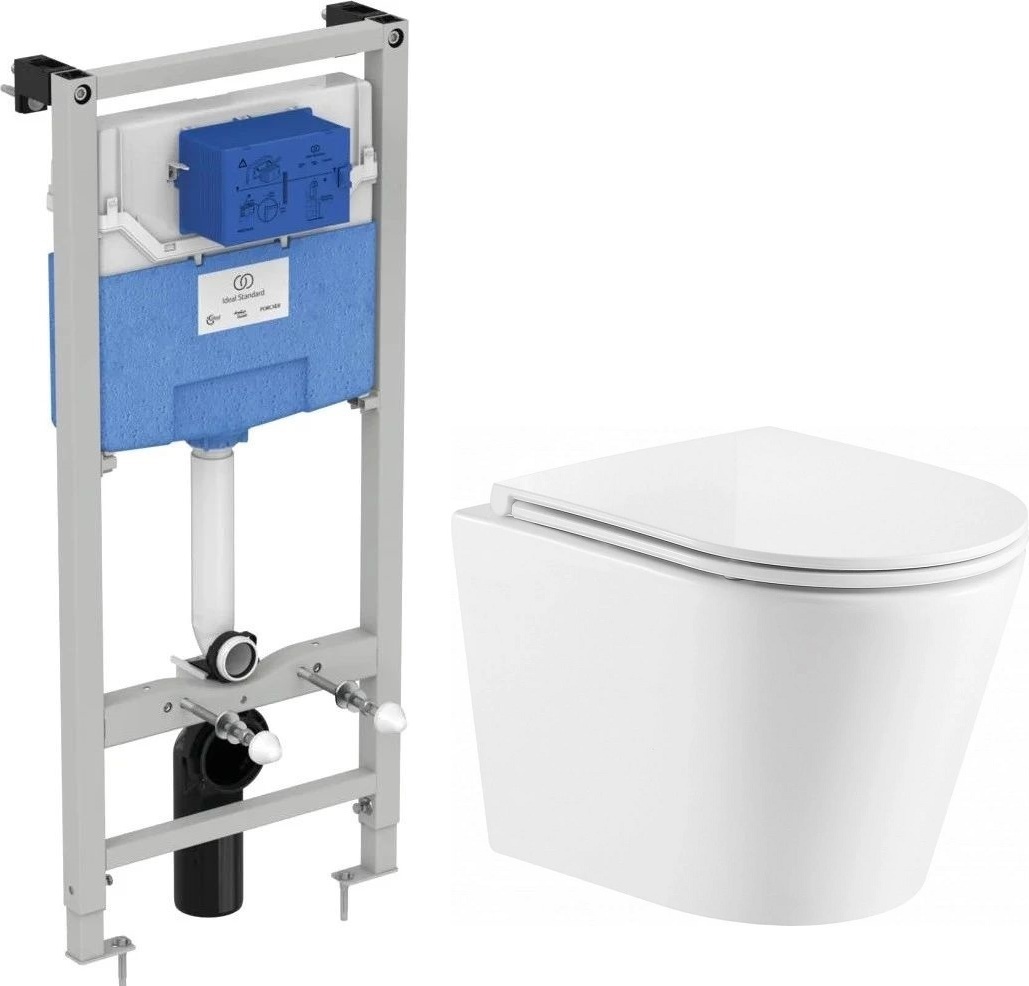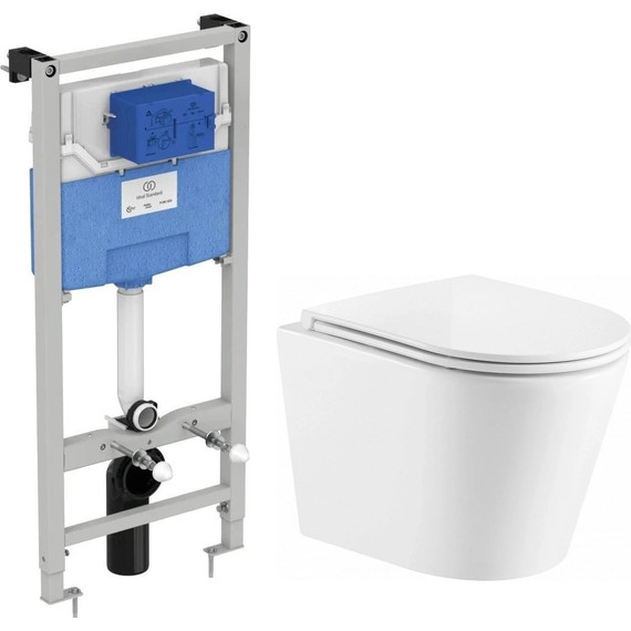 Инсталляция с подвесным унитазом комплект: Ideal Standard Prosys Frame 120 M R020467 с подвесным безободковым унитазом Azario Fonti AZ-402W, сиденье с крышкой микролифт.