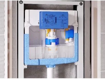 - Аксессуары в комплекте: крепеж для унитаза, крепежи для рамы, подсоединения входящей и сливной труб, сливной патрубок (колено) с адаптером ⌀ 90/110 мм, резиновая прокладка для унитаза ⌀ 45 мм, защитная коробка, запорный клапан G 1/2 "
