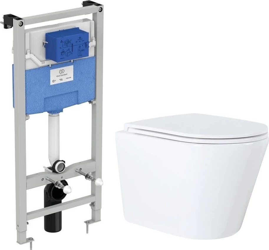 Инсталляция с подвесным унитазом комплект: Ideal Standard Prosys Frame 120 MR020467 с подвесным безободковым унитазом Azario Teramo AZ-0053, сиденье с крышкой микролифт.