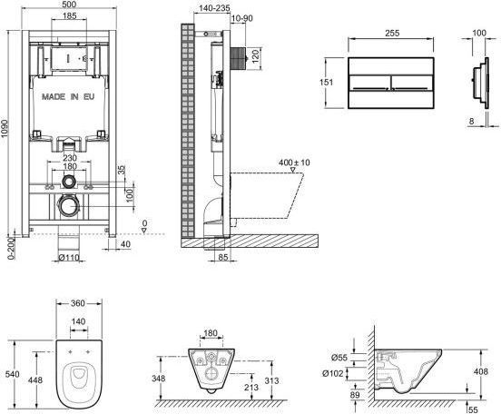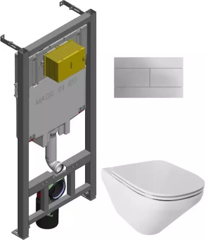 Инсталляция с подвесным унитазом комплект: Jacob Delafon Modern Life E21776RU-00 с подвесным безободковым унитазом, сиденье микролифт, кнопка смыва хром.