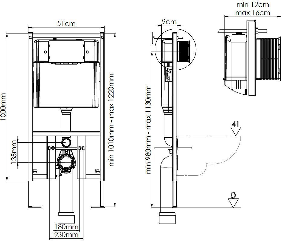 В комплект поставки входит металлическая рама, скрытый резервуар