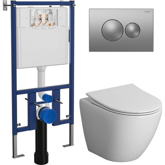 Инсталляция с подвесным унитазом комплект: Loranto 4501 с подвесным безободковым унитазом Niagara Vista NG-9301 сиденье микролифт, кнопка смыва хром матовый