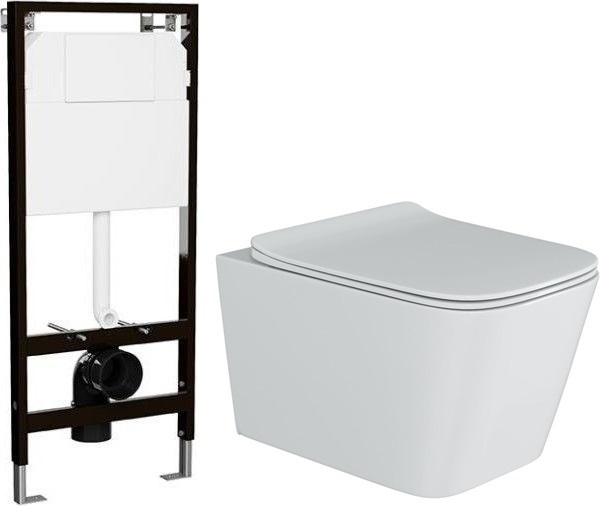 Комплект: инсталляция Sole, подвесной унитаз безободковый Cube pro, сиденье с крышкой микролифт.