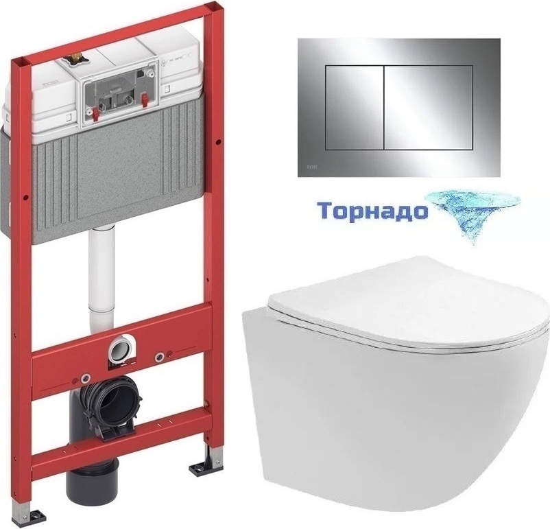 Инсталляция с подвесным унитазом комплект: TECEbase 2.0 9400412 с подвесным безободковым унитазом Aquatek Европа AQ1900T-00 сиденье микролифт, крепление, кнопка смыва хром глянцевый (Система смыва торнадо).