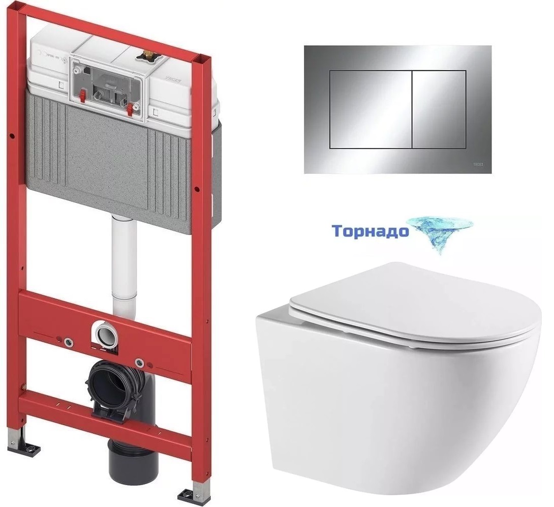 Инсталляция с подвесным унитазом комплект: TECEbase 2.0 9400412 с подвесным безободковым унитазом Azario Grado AZ-0046-UQ3 сиденье микролифт, крепление, кнопка смыва хром глянцевый (Система смыва торнадо).