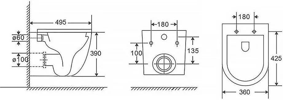 - Комплект крепежных элементов для установки унитаза (установочное расстояние 180 мм)