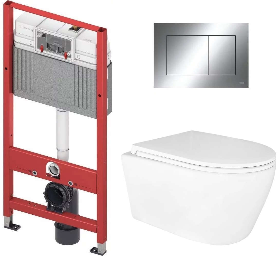 Инсталляция с подвесным унитазом комплект: TECEbase 2.0 9400412 с подвесным безободковым унитазом Azario Uno AZ-2380 сиденье микролифт, крепление, кнопка смыва хром глянцевый