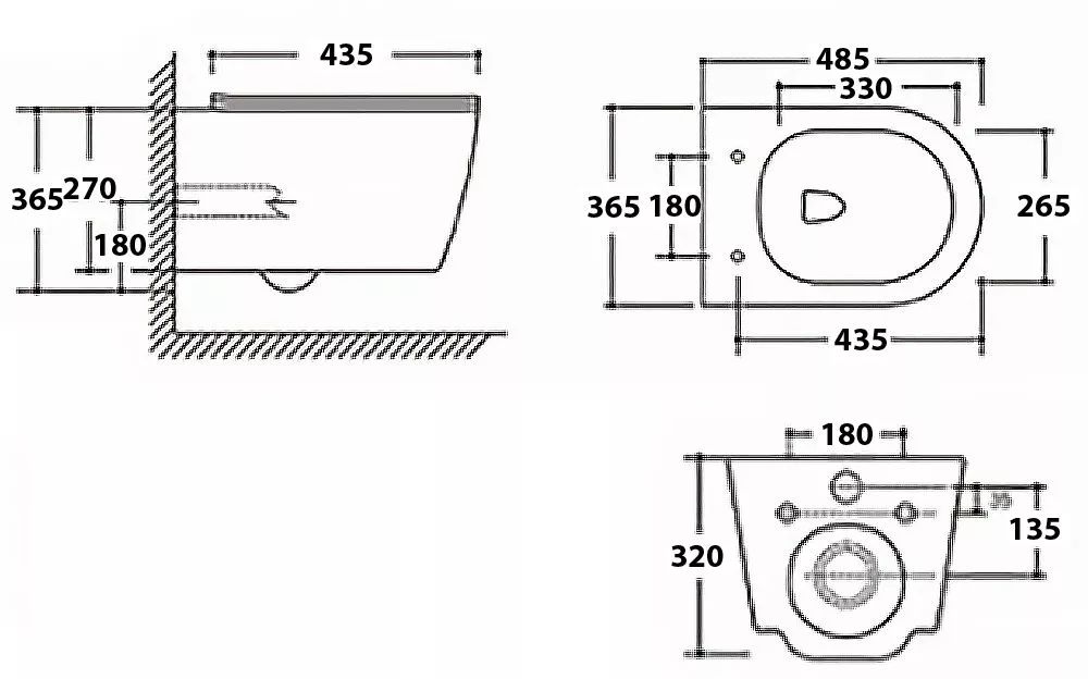 - Комплект крепежных элементов для установки унитаза (установочное расстояние 180 мм)