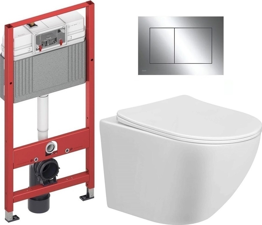 Инсталляция с подвесным унитазом комплект: TECEbase 2.0 9400412 с подвесным безободковым унитазом Taliente Amato AM25010 сиденье микролифт, крепление, кнопка смыва хром глянцевый.