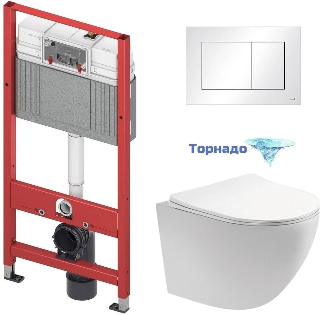 Инсталляция с подвесным унитазом комплект: TECEbase 2.0 9400413 с подвесным безободковым унитазом Aquatek Европа AQ1900T-00 сиденье микролифт, крепление, кнопка смыва белая (система смыва Торнадо)