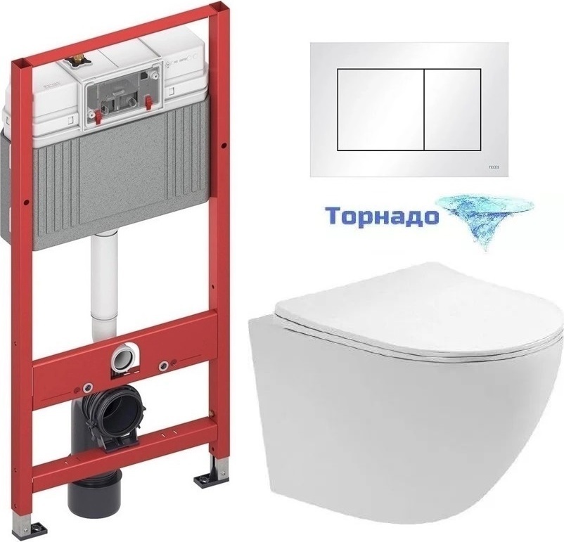 Инсталляция с подвесным унитазом комплект: TECEbase 2.0 9400413 с подвесным безободковым унитазом Aquatek Европа AQ1900T-00 сиденье микролифт, крепление, кнопка смыва белая (Система смыва торнадо).