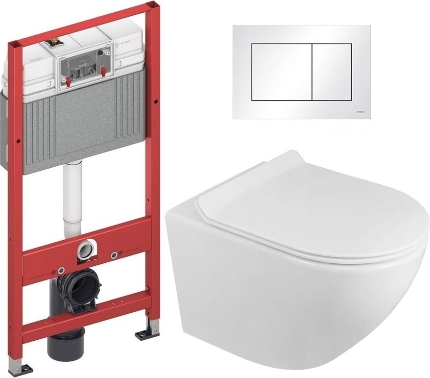 Инсталляция с подвесным унитазом комплект: TECEbase 2.0 9400413 с подвесным безободковым унитазом Azario Grado AZ-0046-N сиденье микролифт, крепление, кнопка смыва белая.