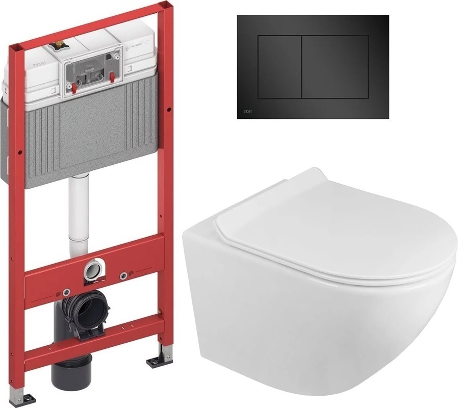 Инсталляция с подвесным унитазом комплект: TECEbase 2.0 9400414 с подвесным безободковым унитазом Azario Grado AZ-0046-N сиденье микролифт, крепление, кнопка смыва чёрная матовая.
