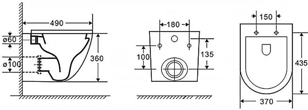 - Комплект крепежных элементов для установки унитаза (установочное расстояние 180 мм)
