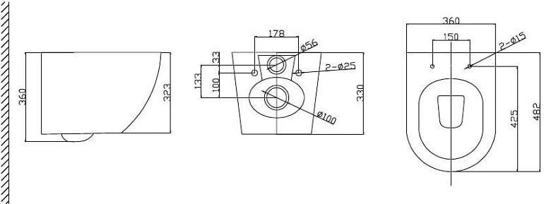- Комплект крепежных элементов для установки унитаза (установочное расстояние 180 мм)