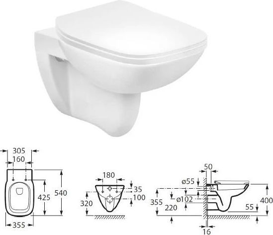- Для унитазов с межосевым расстоянием 180 и 230 мм