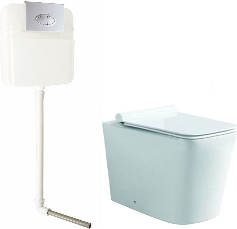 Скрытый бачок с приставным безободковым унитазом SantiLine SL-5021+SL-02 + сиденье с крышкой микролифт + кнопка смыва хром.