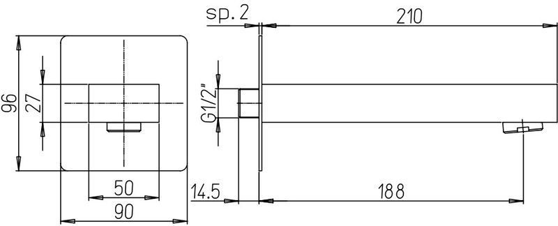 Излив для ванны Paini Dax-R, материал латунь, цвет хром.