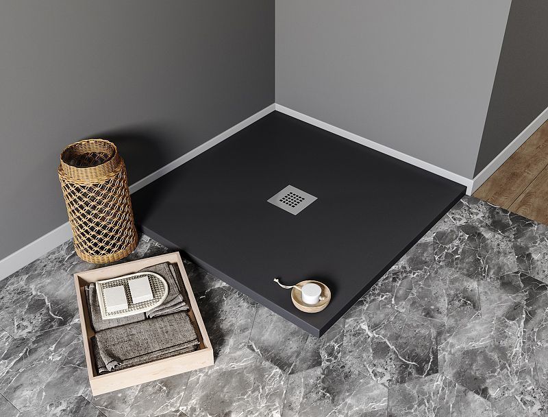Каменный поддон Aquanet Pleasure, размер 1000х1000х30 мм. Цвет чёрный.