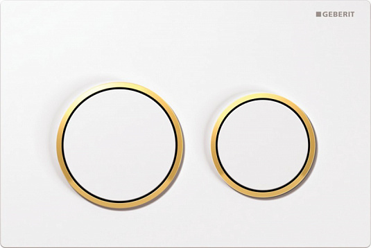 Кнопка смыва Geberit Omega 20 115.085.KK.1, управление - механическое, материал - пластик, цвет - белый/золото.