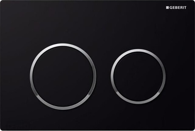 Кнопка смыва Geberit Omega 20 115.085.KM.1, управление - механическое, материал - пластик, цвет - черный/хром глянец.