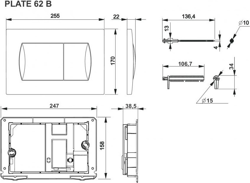 Кнопка смыва Roca Active 62B 8901160B0 с двумя режимами слива воды, материал - ABS-пластик, цвет - белый.