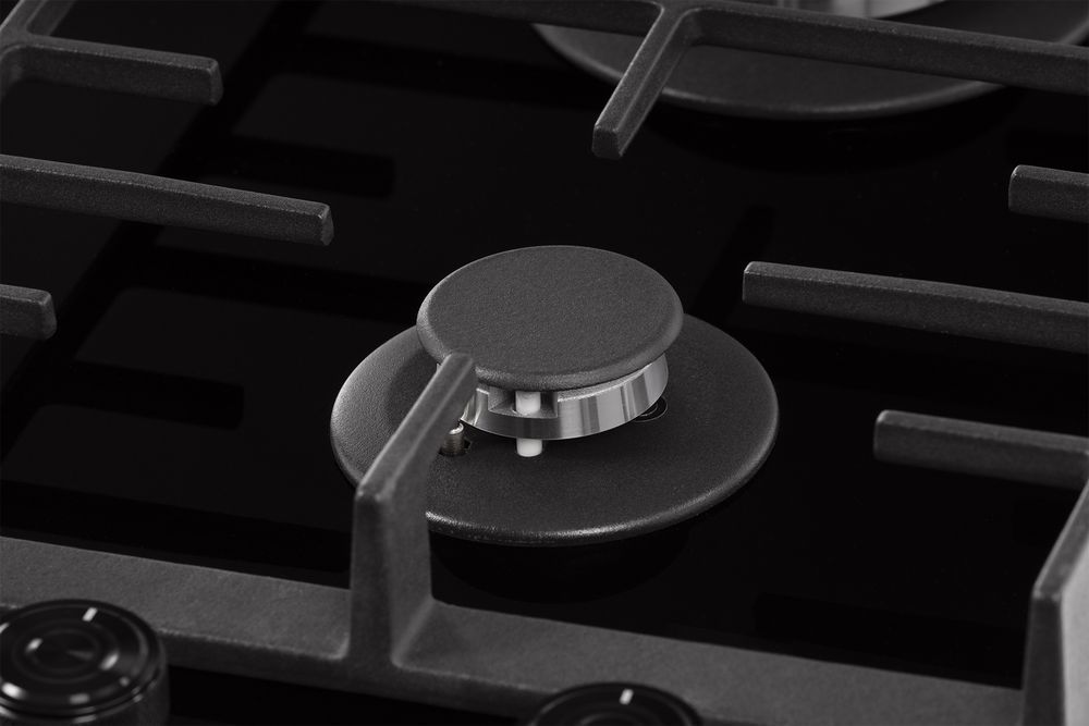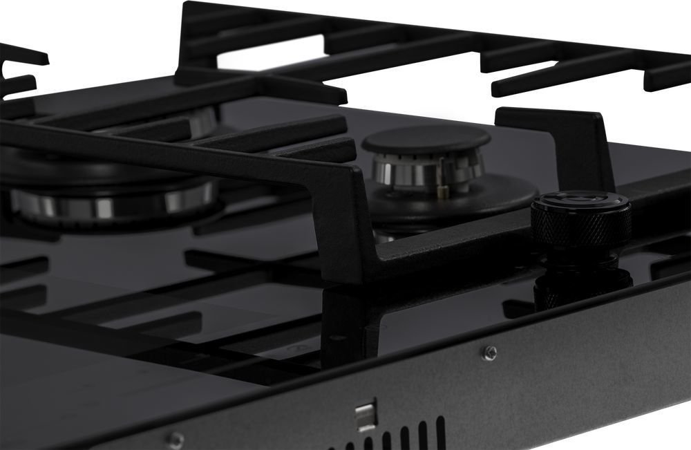 - Поверх газовых конфорок установлена массивная и прочная чугунная решетка, она устойчива и удобна в очистке. На гладкую и ровную поверхность решетки можно поставить посуду любой формы и веса.