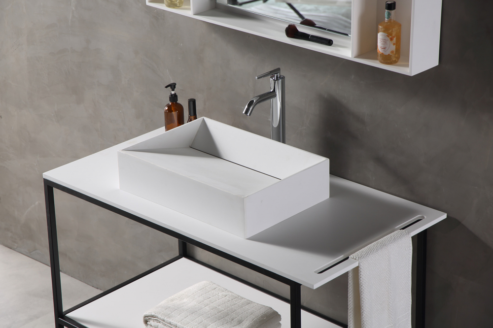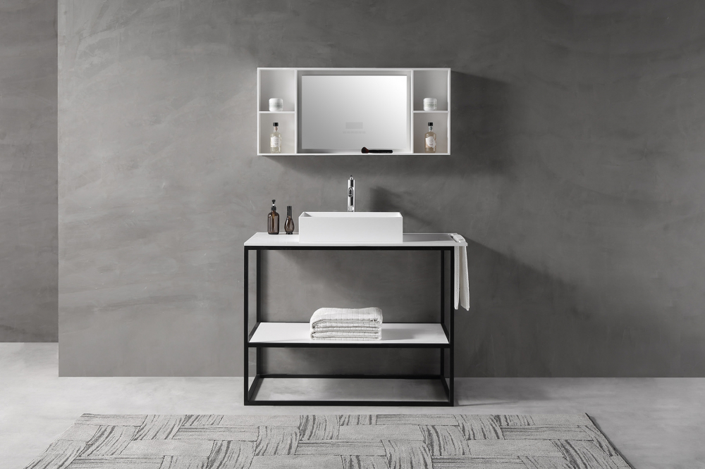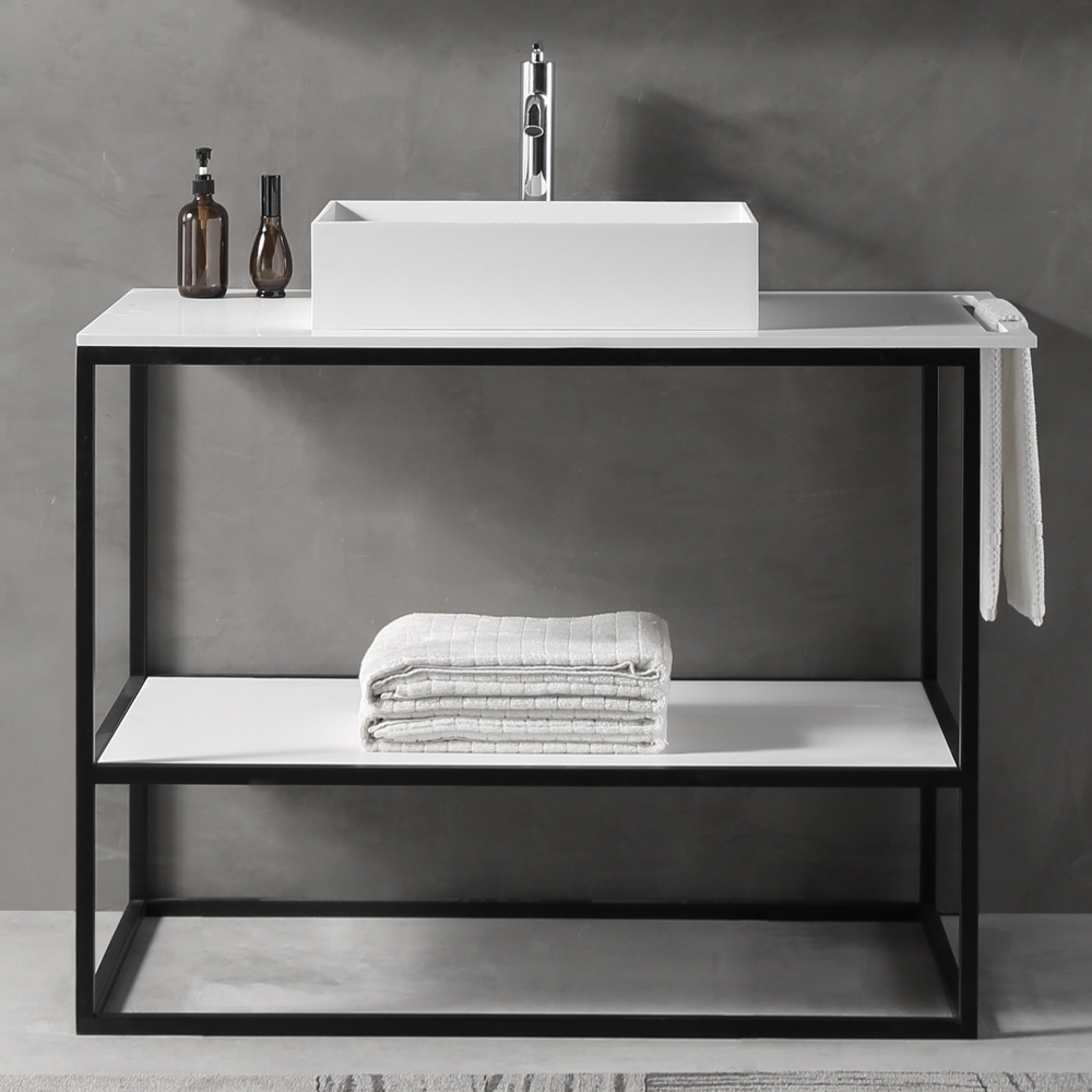 Консоль напольная со столешницей из искусственного камня Abber Stein AS2631 и нижней вставкой. Раковина приобретается отдельно.